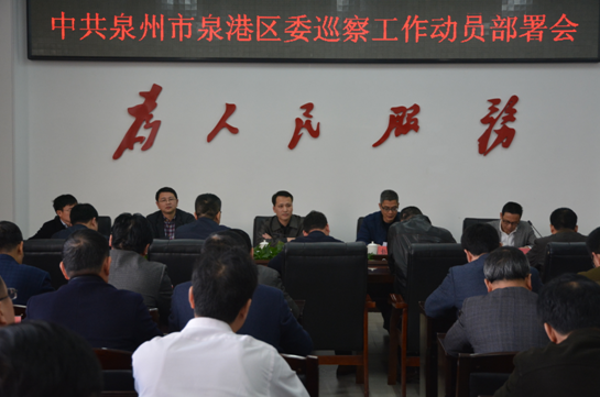 ????會議要求,全區各級各部門要深刻領會中央精神,充分認識巡察工作的重要性和緊迫性。被巡察單位黨組織要把巡察工作作為一項重要政治任務,列入重要議事日程,主動接受巡察監督,同時認真對照相關要求,即知即改、立行立改,主動配合做好巡察工作。圖為:泉港區委巡察工作動員部署會現場