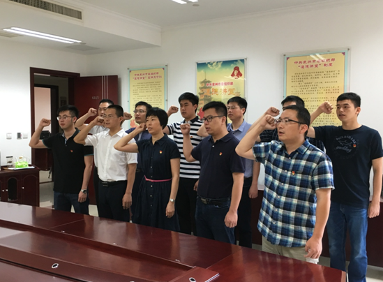 “我志愿加入中國共產黨,擁護黨的綱領,遵守黨的章程……為共產主義奮斗終身,隨時準備為黨和人民犧牲一切,永不叛黨?!?名紀檢組黨員舉起右手,面對鮮艷的黨旗莊嚴承諾。