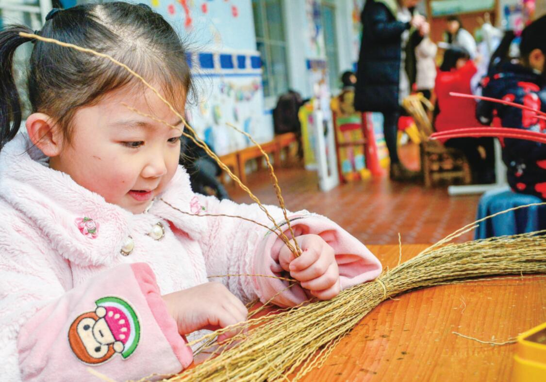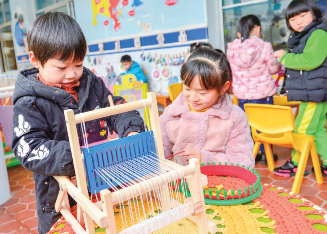 為了讓幼兒們在輕松愉悅的活動中了解編織藝術(shù),激發(fā)學習興趣,實驗幼兒園內(nèi)19名教師用盡了心思,下足了工夫,創(chuàng)設(shè)編織環(huán)境,營造編織文化氛圍,開拓幼兒的自主性;學習編織技巧,結(jié)合幼兒年齡特點,豐富區(qū)域活動內(nèi)容。