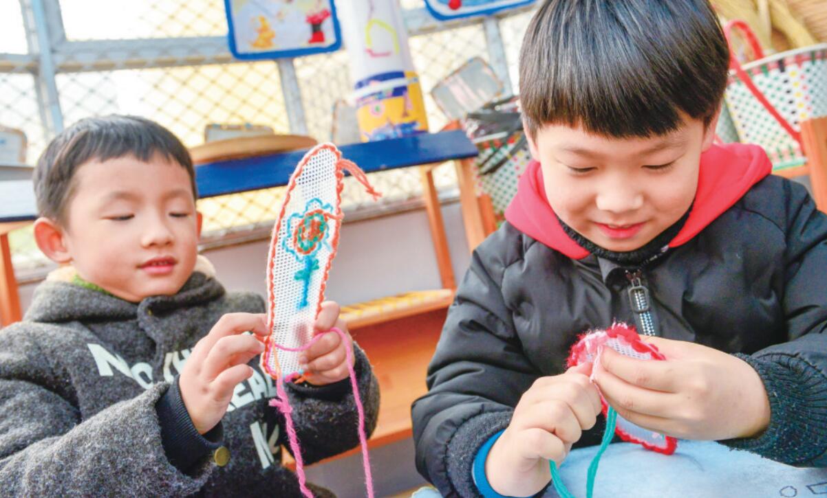 回憶起實施編織活動的過程,大班年段長周麗珍告訴記者,每天加班成為常態(tài)與習慣。“剛開始,我們只設(shè)置了‘五彩編織’和‘繽紛刺繡’兩個活動區(qū)域,但發(fā)現(xiàn)刺繡對孩子們來說難度太大,超出了大部分孩子的能力水平,他們一下子就失去了興趣。我們立即進行調(diào)整,縮小繽紛刺繡區(qū)面積,減少精細材料的投放,增設(shè)‘百變花籃’活動區(qū)域。”