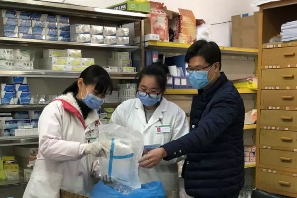圖為2月1日,下洋鎮紀委組織到轄區內的衛生院監督檢查防控物資的保障供應情況。(余惠珍 攝)