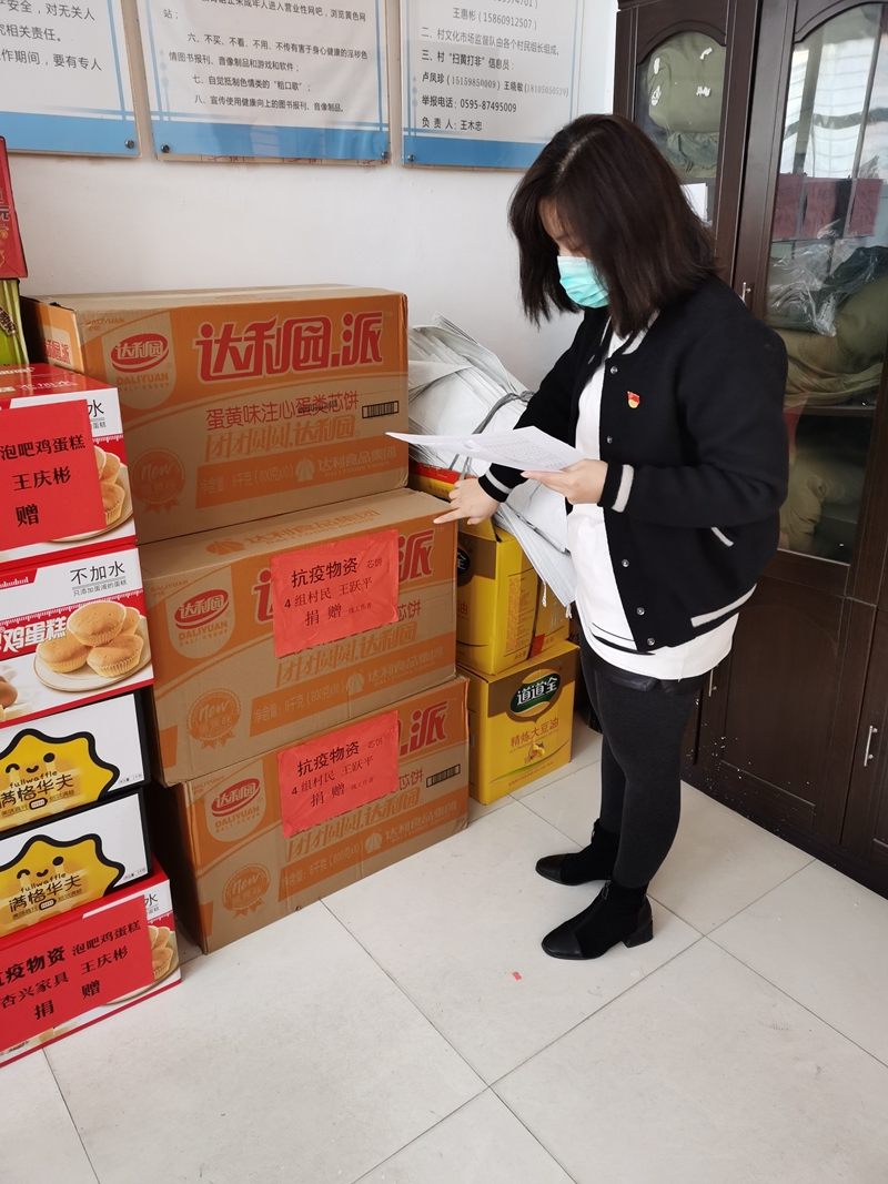 圖為盧鳳珍在清點村級防控疫情物資庫存情況
