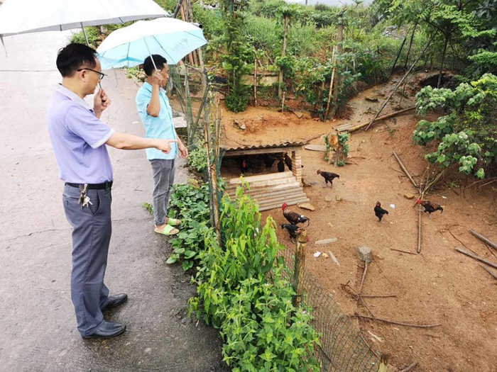 圖為掛鉤干部劉明坤入戶走訪王銀子,了解家畜養(yǎng)殖情況