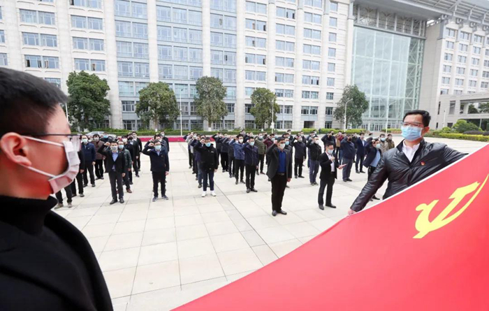 泉州市紀委監委疫情防控駐村工作隊全體成員面向黨旗重溫入黨誓詞