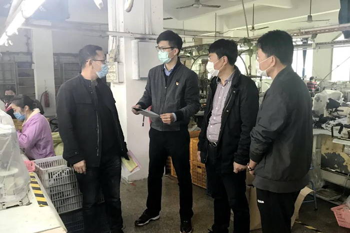 唐躍宏與村兩委走訪轄區企業,宣講優惠政策和防控要求