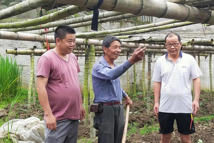 永春縣外山鄉(xiāng)紀(jì)檢監(jiān)察干部實(shí)地了解低保戶的生產(chǎn)情況,并協(xié)調(diào)解決冬瓜缺水灌溉問題。