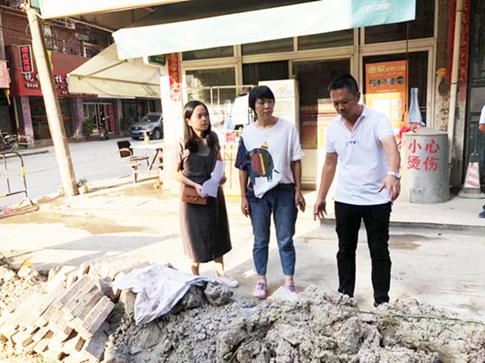 圖為協(xié)作組監(jiān)督檢查社區(qū)污水管網(wǎng)改造項(xiàng)目情況