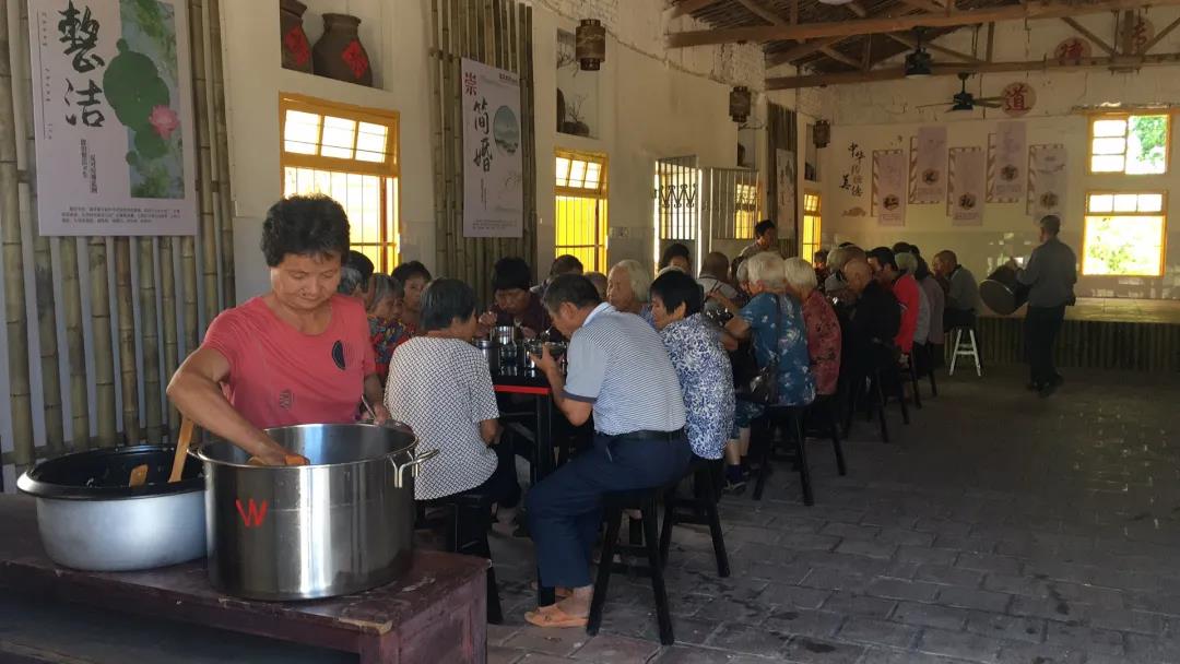 2019年中秋節,第一場“愛心午餐”熱熱鬧鬧地辦了起來。一碗碗熱騰騰的咸飯、紅燒肉、紫菜湯端到了老人們的桌上。“吃大鍋飯的感覺又回來了,我們一群老頭老太也能干‘大’事。”村里吳美鈔老人一邊豎著大指,一邊熱情地招呼我入座。