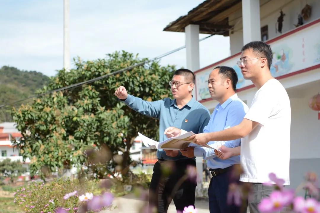 林紀東(左)調研吳嶺村脫貧攻堅項目建設
