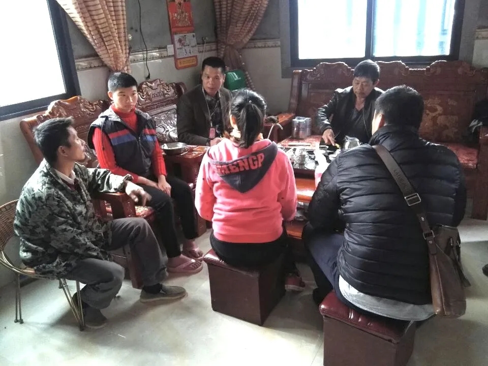 林速輝(左三)在羅溪鎮柏山村入戶核查民生資金監管平臺的異常信息