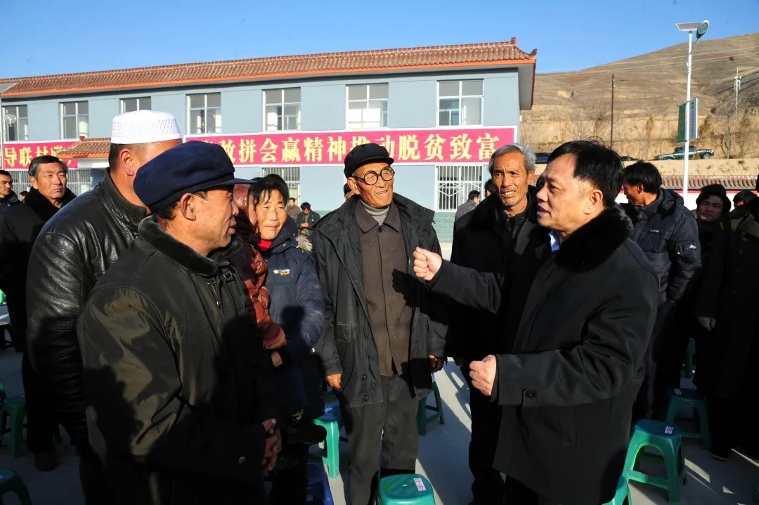 李振生(前排右一)在甘肅省白銀市會寧縣甘溝驛鎮(zhèn)鐘家岔村與村民交流