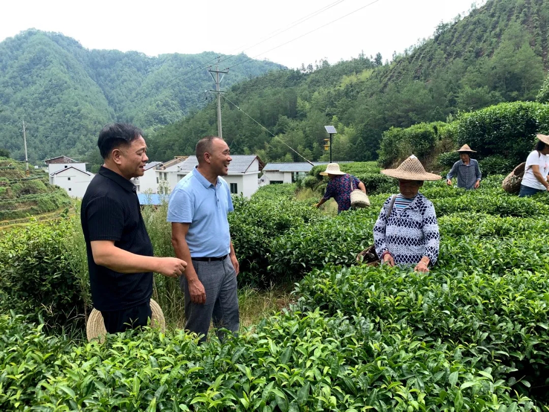 李振生(左一)回訪寧德市壽寧縣下黨鄉(xiāng)下黨村“下鄉(xiāng)的味道”扶貧定制茶園項目