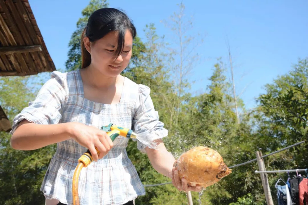 建檔立卡貧困戶柯油麻使用自來水清洗地瓜
