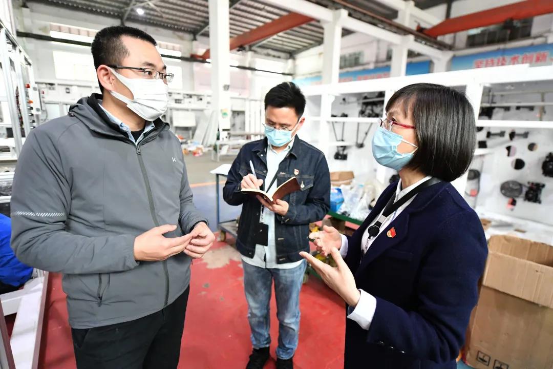 泉州市洛江區(qū)紀檢監(jiān)察干部深入工廠生產(chǎn)車間了解相關(guān)政策落實情況(林升 攝)