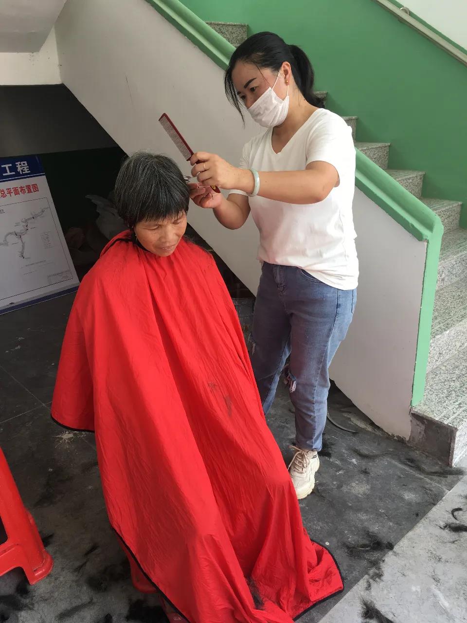 德化縣憨鼠愛(ài)心小分隊(duì)志愿者下鄉(xiāng)開(kāi)展扶貧助困活動(dòng),愛(ài)心人士為幫扶對(duì)象理發(fā)。