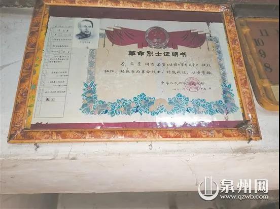 老宅橫梁上一直掛著李文墨革命烈士證明書