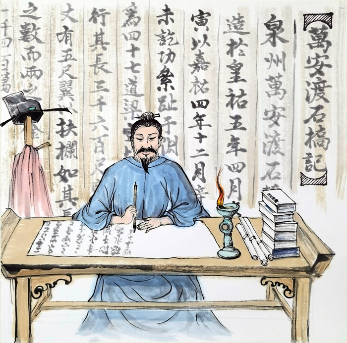 蔡襄深知萬安橋(今洛陽橋)建成不易,親自撰寫《萬安渡石橋記》,刻碑立于洛陽橋南橋頭。在有限的碑面上,蔡襄撰文時忽略自已的功績,贊頌主事者,注重賬目公開。《萬安渡石橋記》的文章、書法、刻工被譽為“三絕”,展示了蔡襄的家國情懷、廉潔精神和為民意識。