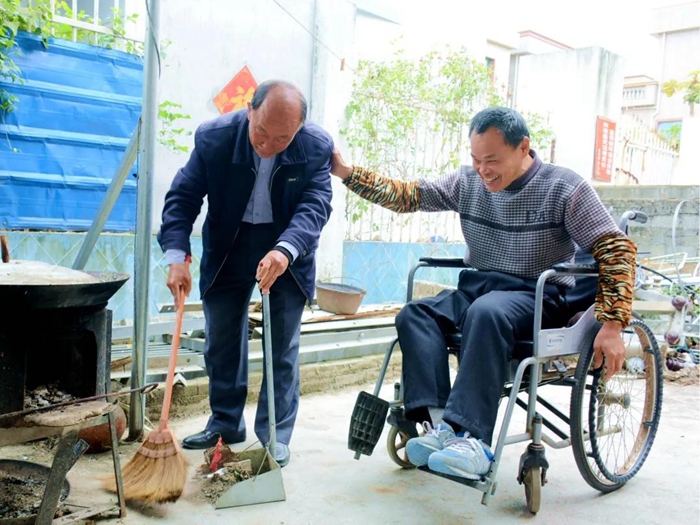 “是老陳救了我的命!”雨后初晴,黃塘鎮碧嶺村路面潔凈,67歲的楊清福坐在輪椅上,回憶過往。