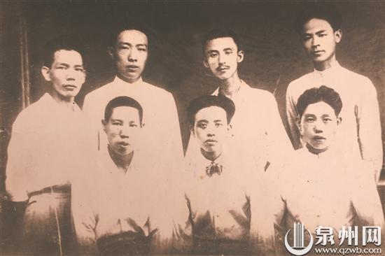 中共南安支部書記李毅然(后排右一)與曾任共青團福建省委書記董云閣(前排中)、中共泉州特支負責人李松林(后排左二)、特支成員辜仲釗(前排左一)、第一任中共同安支部書記彭友圃(后排左三)等人合影。