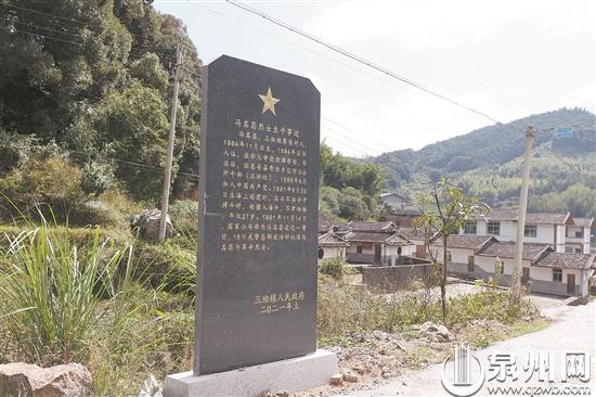 在馮其昌家鄉(xiāng)三班鎮(zhèn),當地政府為其所立的紀念碑。