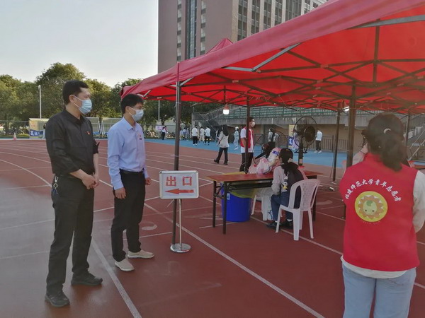 校紀檢監察干部深入全員核酸檢測點,圍繞醫護人員到崗情況、采樣設備和防護物資保障等情況開展監督。