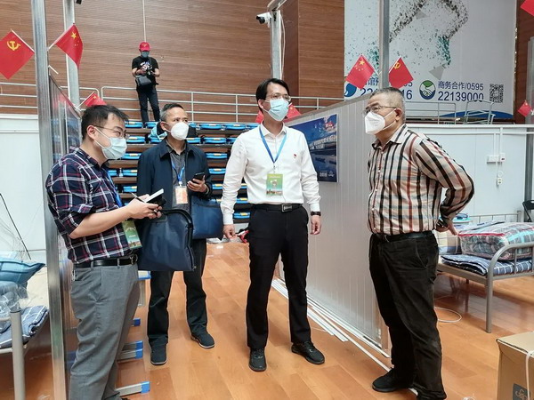 泉州金控集團紀檢監察干部深入權屬企業省五建集團承建的方艙醫院進行督查,確保該項目建設廉潔高效,如期交付使用。