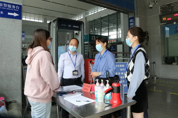 縣疫情防控督導組干部在動車站了解疫情防控人員值守、過往客流量、出入站人員登記等有關情況,督促落實相關責任。