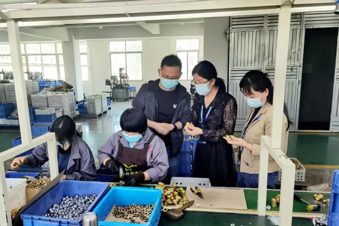 南安市紀檢監察干部在某衛浴企業生產車間了解復工復產情況(黃文彪 攝)