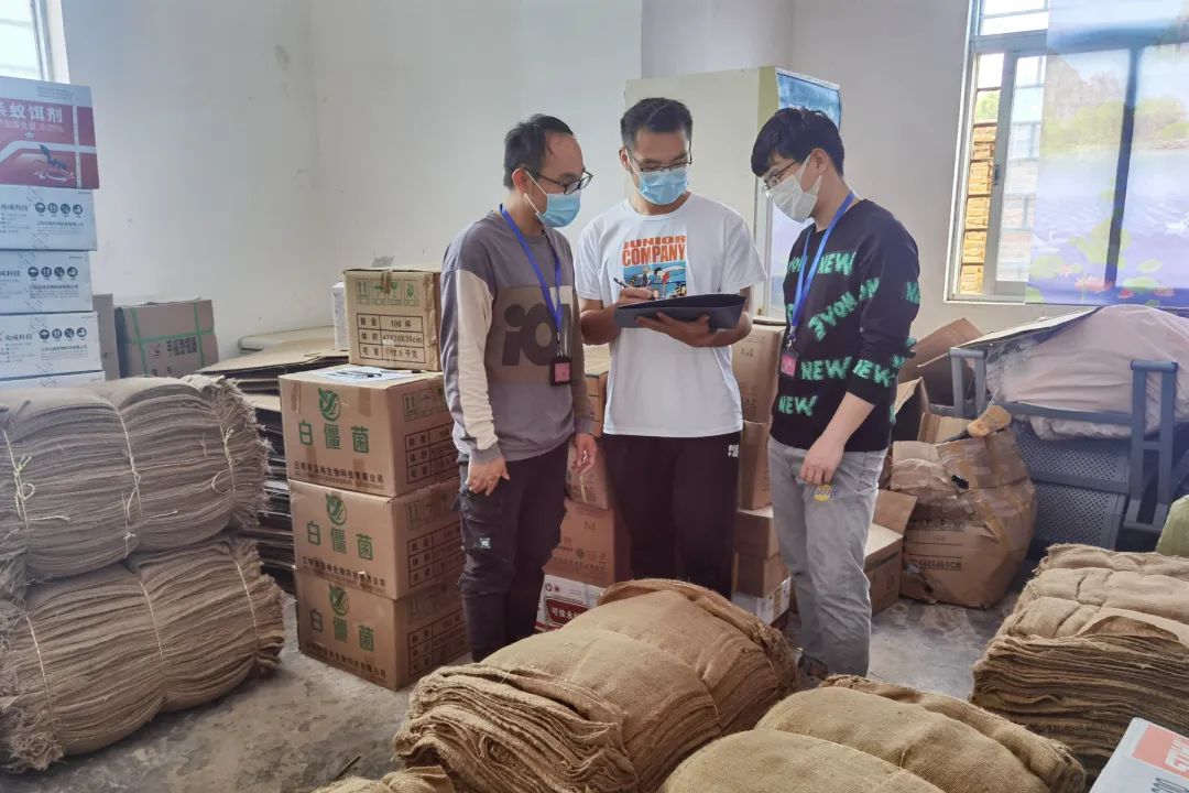 惠安縣凈峰鎮(zhèn)紀委監(jiān)察組干部在倉庫檢查防汛麻袋、雨鞋等防汛物資儲備管理情況。(林思彬 攝)