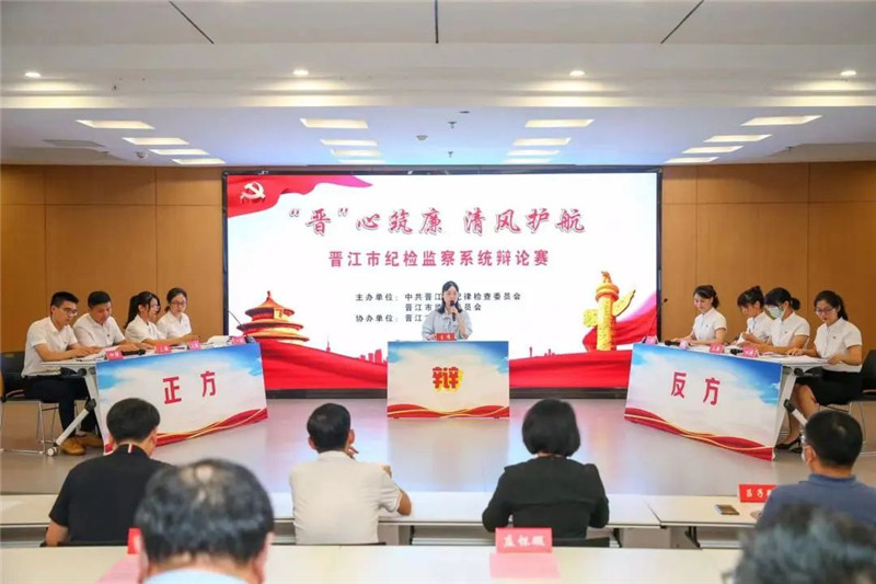 晉江市紀委監(jiān)委組織開展“‘晉’心筑廉 清風護航”紀檢監(jiān)察系統(tǒng)辯論賽,來自委機關黨委和各協(xié)作片區(qū)的7個辯論隊,圍繞“新時代紀檢監(jiān)察工作更需要通才還是專才”等辯題展開激烈辯論,以賽代訓、以賽促學。(嚴世超 攝)