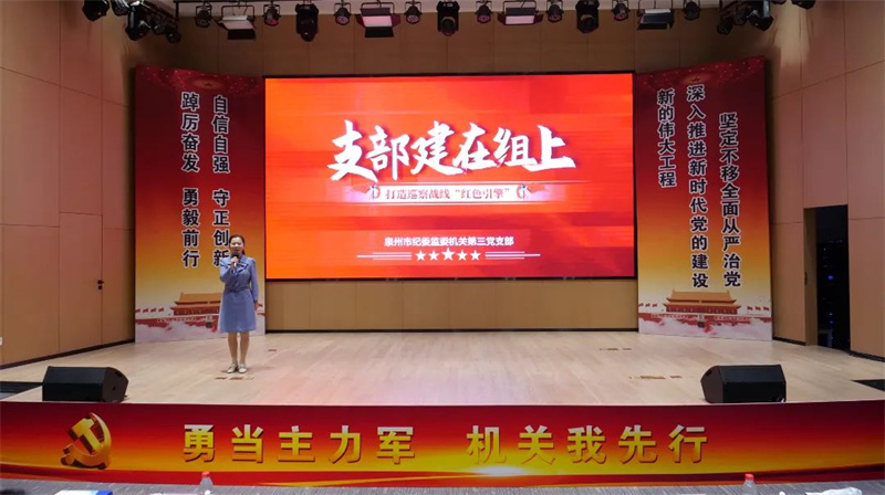 堅持以黨建引領政治巡察,強化巡察組臨時黨支部建設,推動市委巡察工作高質量發展。圖為市委巡察機構特色黨建項目《支部建在組上 打造巡察戰線“紅色引擎”》參與2022年度泉州市機關特色黨建評展榮獲一等獎。