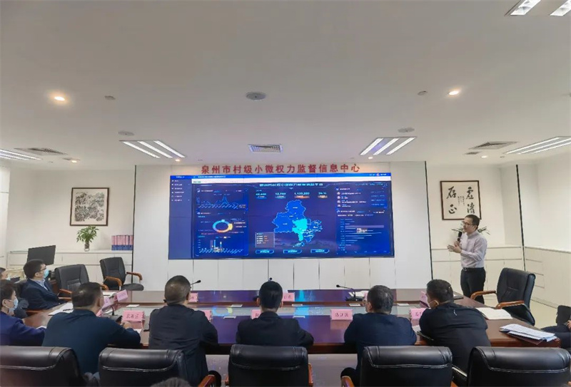 探索做強基層監督機制方法,在全省首創運用“微信群+監督平臺”模式,開設村務公開、群眾訴求、社情民意、紀檢監察干部訪民情等模塊,通過科技賦能提升基層監督質效。圖為該室干部推介演示泉州市村級小微權力監督信息平臺功能。