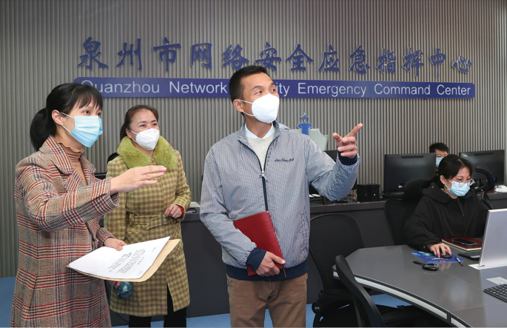 創(chuàng)建“1+N”聯(lián)動(dòng)監(jiān)督機(jī)制,通過信息共享、溝通會(huì)商、聯(lián)合督查,持續(xù)推進(jìn)優(yōu)化營商環(huán)境,提高服務(wù)群眾效能。圖為該組干部到聯(lián)動(dòng)單位市12345熱線中心了解運(yùn)行情況和群眾反映熱點(diǎn)。