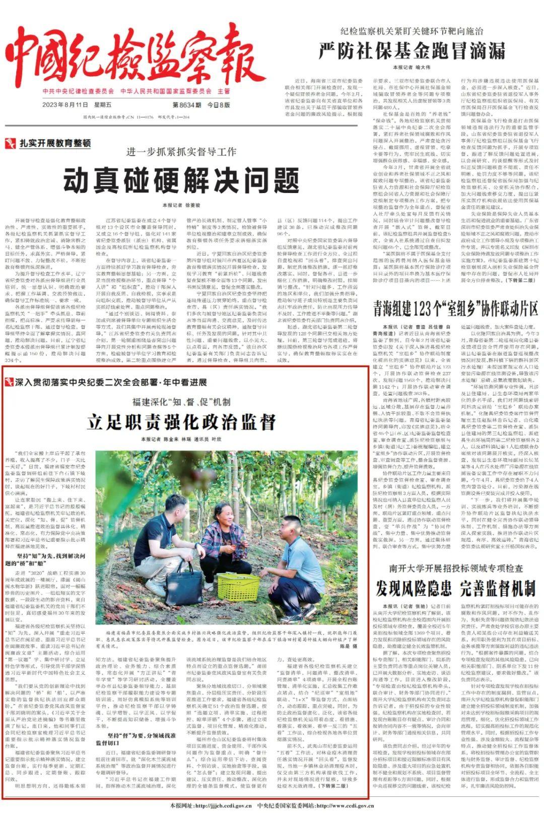 8月11日,《中國紀檢監察報》頭版“深入貫徹落實中央紀委二次全會部署·年中看進展”欄目刊發福建紀檢監察機關深化“知、督、促”監督機制推進政治監督具體化、精準化、常態化的經驗做法。