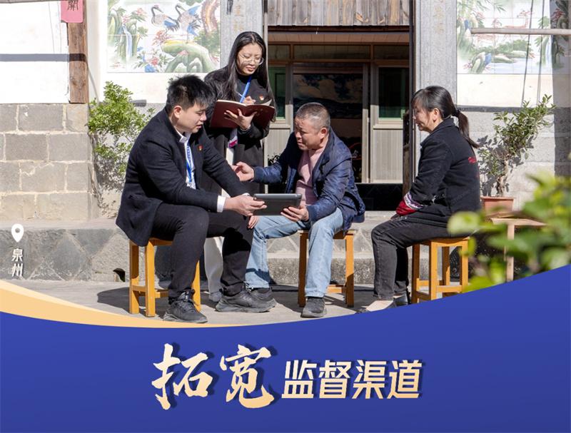 圖為安溪縣祥華鄉紀檢監察干部在祥華村走訪了解群眾通過基層小微權力監督平臺參與“四風”監督等情況。