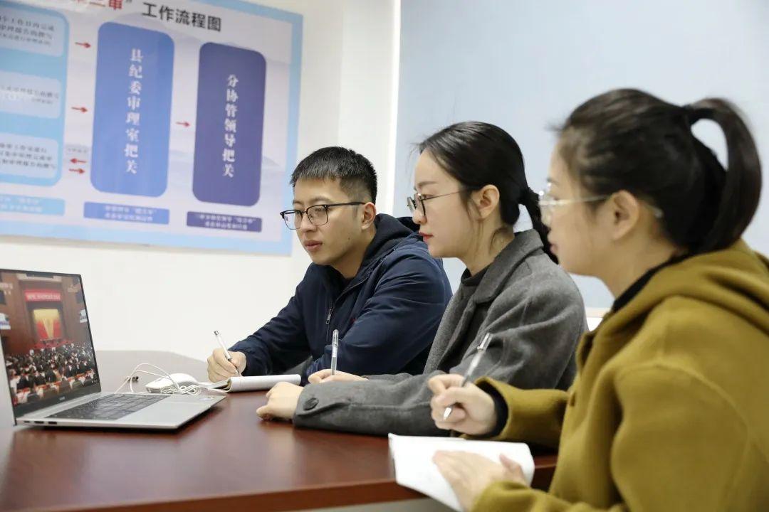 泉州開發區紀工委監察組組織委機關全體黨員干部收聽收看二十屆中央紀委三次全會實況(李銘睿 攝)
