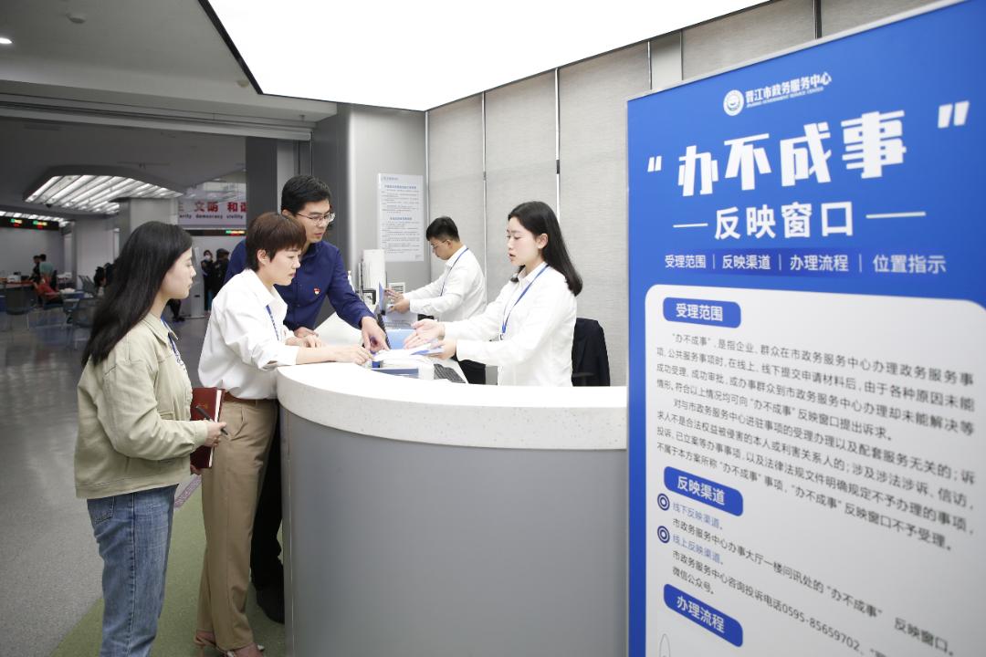 晉江市紀委監(jiān)委著力營造崇尚實干激勵擔當?shù)臐夂穹諊?,把糾治形式主義、官僚主義問題擺在突出位置,深入開展調(diào)研督導、督查檢查、明察暗訪,著力破解頑瘴痼疾。圖為該市紀檢監(jiān)察干部到市政務服務中心“辦不成事”反映窗口,跟蹤監(jiān)督該窗口受理的辦不成事項及辦理過程。(嚴世超 攝)