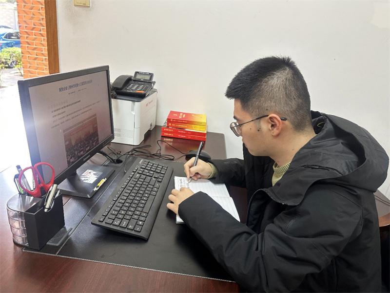泉州城建集團紀委(監察專員辦)紀檢監察干部認真學習全會相關報道,通過分組學習交流研討的形式,深刻領會全會精神實質。(吳達洋 攝)