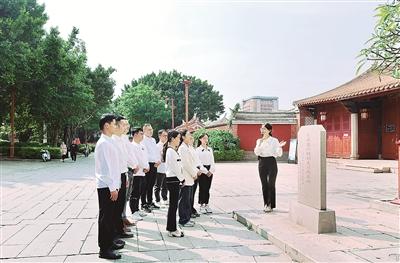 福建省泉州市鯉城區紀委監委深入學習貫徹習近平文化思想,從中華優秀傳統文化和本土紅色文化、廉潔文化中挖掘時代價值,教育引導黨員干部汲取奮進力量。圖為近日,該區紀委監委組織青年黨員干部在位于世界遺產點泉州府文廟內的中共泉州特別支部成立舊址開展學習。 林娉婷 攝