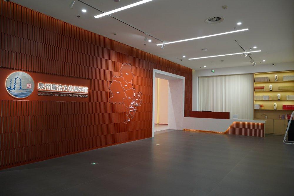 “清廉泉州館”位于泉州市公共文化中心市科技與規(guī)劃館4層,由泉州廉潔文化展示館和刺桐清風(fēng)長(zhǎng)廊臨展區(qū)組成,展陳面積1643平方米。展陳內(nèi)容依據(jù)中央辦公廳印發(fā)的《關(guān)于加強(qiáng)新時(shí)代廉潔文化建設(shè)的意見》文件中對(duì)新時(shí)代廉潔文化建設(shè)的解讀,以時(shí)間順序?yàn)檩S,設(shè)有“根脈·城興于廉”“信念·赤心報(bào)國”“力量·勇毅前行”三大展陳部分。通過實(shí)景實(shí)物還原、交互設(shè)計(jì)、空間營造、元素融合等方式,從加強(qiáng)新時(shí)代廉潔文化建設(shè)的重要意義起筆,鉤沉千年刺桐城向海而生、有廉乃興的歷史脈絡(luò),重溫烽火歲月獻(xiàn)身革命的赤誠初心,吹響“強(qiáng)產(chǎn)興城 清風(fēng)護(hù)航”的奮進(jìn)號(hào)角。