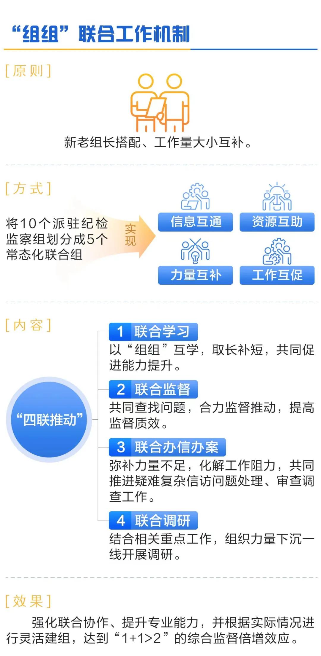 “‘組組’聯合統籌了監督力量,變‘單打獨斗’為‘協同作戰’,充分發揮各組優勢,讓監督更加精準有效?!甭褰瓍^紀委監委有關負責同志表示,下一步,將持續優化“組組”聯合工作機制,充分釋放“室組”聯動效能,更好發揮派駐監督“探頭”作用,實現同向發力、同題共答,推動問題整改到位。