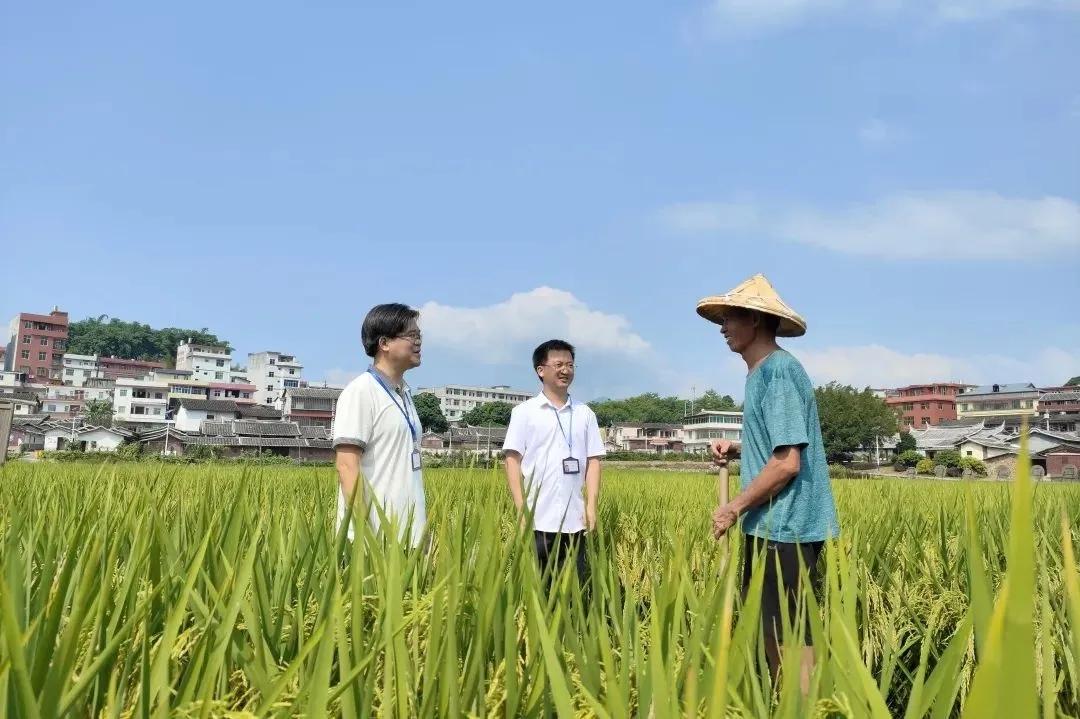 桃城鎮紀檢監察干部在花石社區了解土地流轉種植情況。(林秋月 攝)