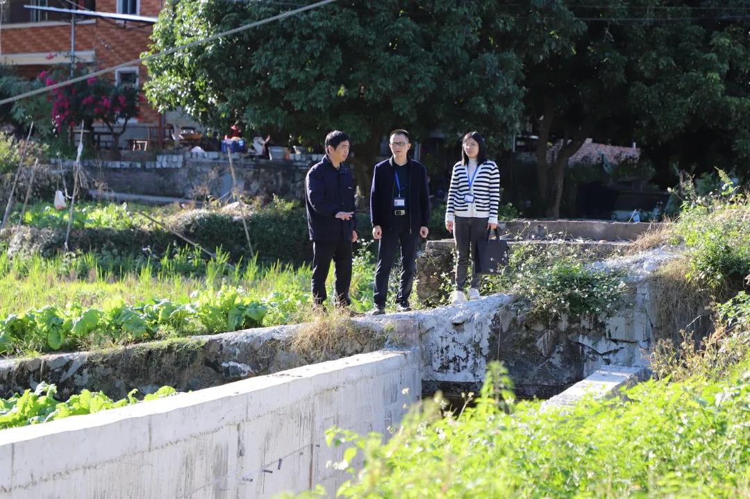 永春縣委巡察組干部到東關鎮溪南村實地走訪,了解排洪渠建設進展情況。