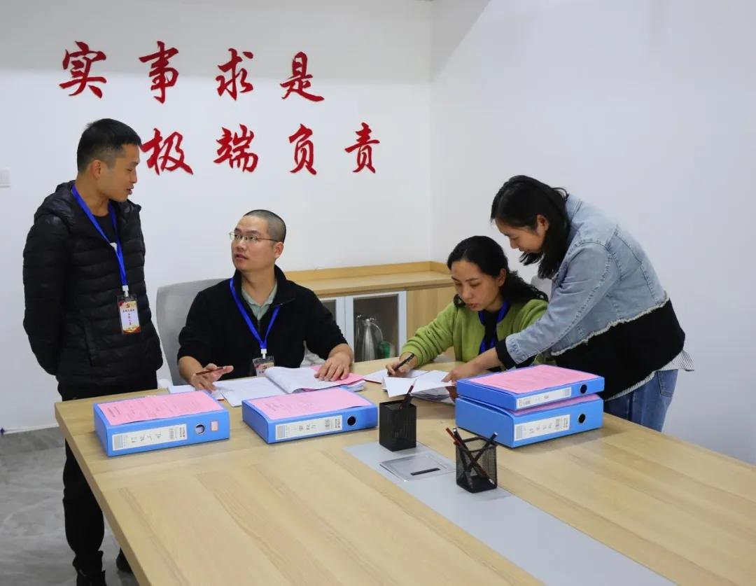 惠安縣委巡察組與村級聯動巡察組集中辦公,查看重點村巡察相關資料。(張錦宣 攝)