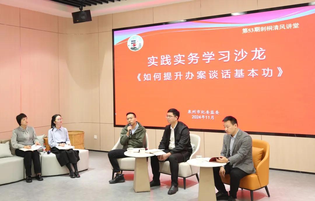 泉州市紀委監委始終加強“五個堅持”“政治監督‘三盯’”等理念思路的學習宣傳和實踐運用,創新搭建實踐實務沙龍,變傳統“一對N”的授課模式為“N對N”的互動交流,讓干部在交流探討中提升總結思考、口頭表達能力,在互學互鑒中提升執紀執法業務技能。圖為該市紀委監委在刺桐清風講堂舉辦以“如何提升辦案談話基本功”為主題的實踐實務沙龍。(楊璐璐 攝)