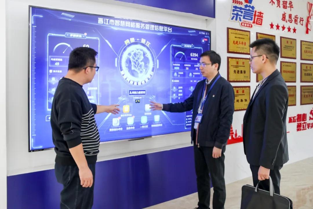 晉江市委巡察干部與池店鎮紀檢監察干部運用“晉江市智慧網格服務管理信息平臺”開展監督檢查(嚴世超 攝)