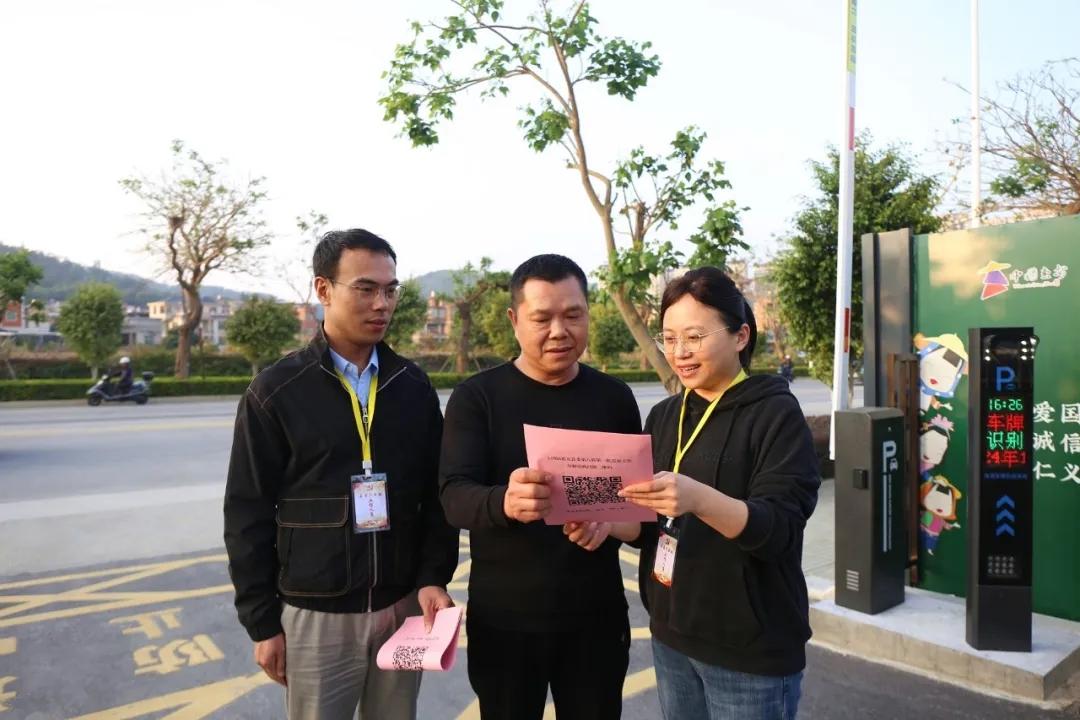 惠安縣委巡察組干部走訪群眾,分發“碼上巡”宣傳單。(張錦宣 攝)