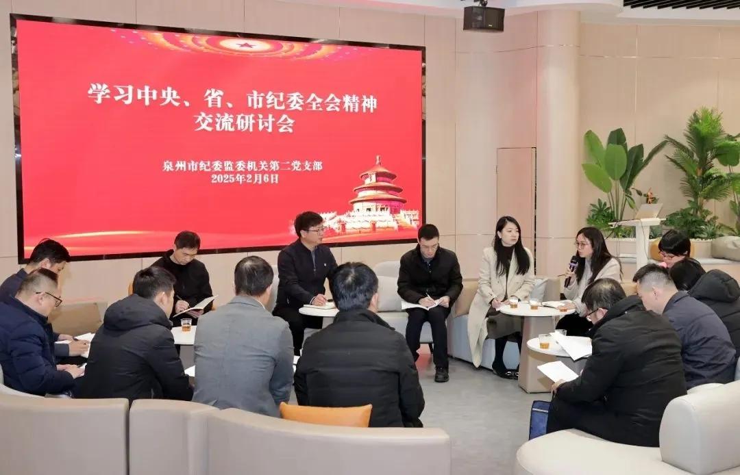 泉州市紀委監委機關第二黨支部開展學習省紀委十一屆五次全會精神交流研討。(張九強 攝)