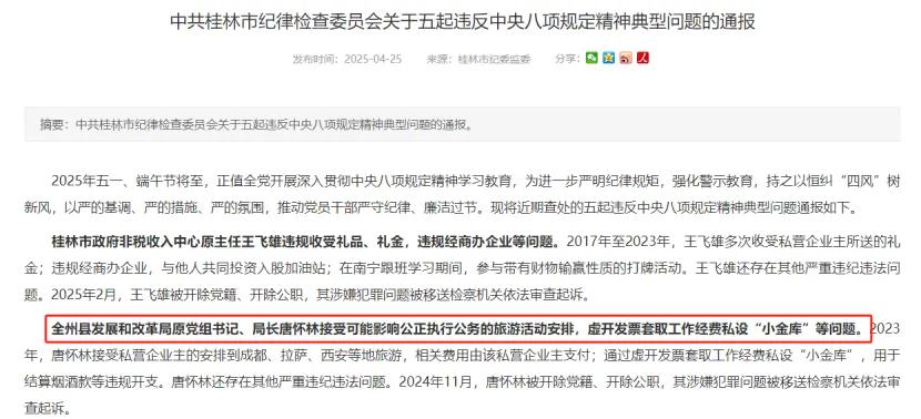假期是出游高峰期,也是黨員干部違規旅游問題多發期。就在上周五,廣西壯族自治區桂林市紀委監委通報了一起違規旅游問題。