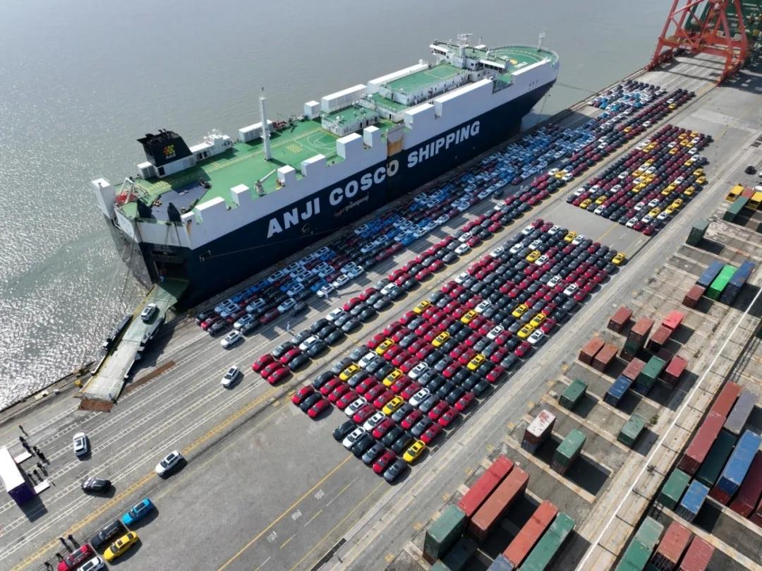 福州港江陰港區,上千輛外貿汽車等待裝船。(張政榮 攝)